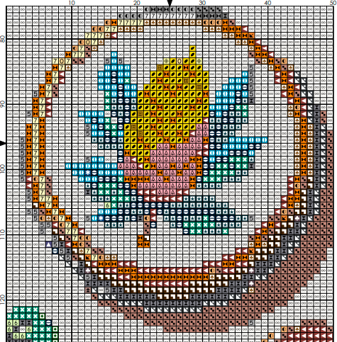 Professional Cross Stitch Chart – Clear symbols, complete DMC color legend, grid markers, and stitch references