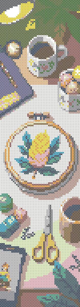A bookmark for the modern maker: Contemporary stitchers deserve patterns that celebrate our workspaces, our creative energy, and our blend of tradition and innovation. This bookmark honors the spaces where we create, the tools we use, and the beautiful intersection of handcraft and contemporary design. Mark your inspiration books, display it in your studio, celebrate the maker you've become.