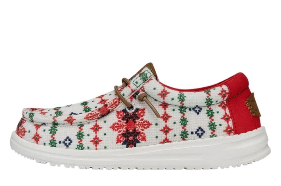 These slip-on shoes are perfect for kids The easy-to-wear design features a slip-on closure that ensures a comfortable fit for all-day wear. Whether it's an outdoor adventure or a simple walk in the park, the Hey Dude Wendy Cool Yule Kids Casual Slip On Shoes!! are the ideal choice for your child's footwear needs.
