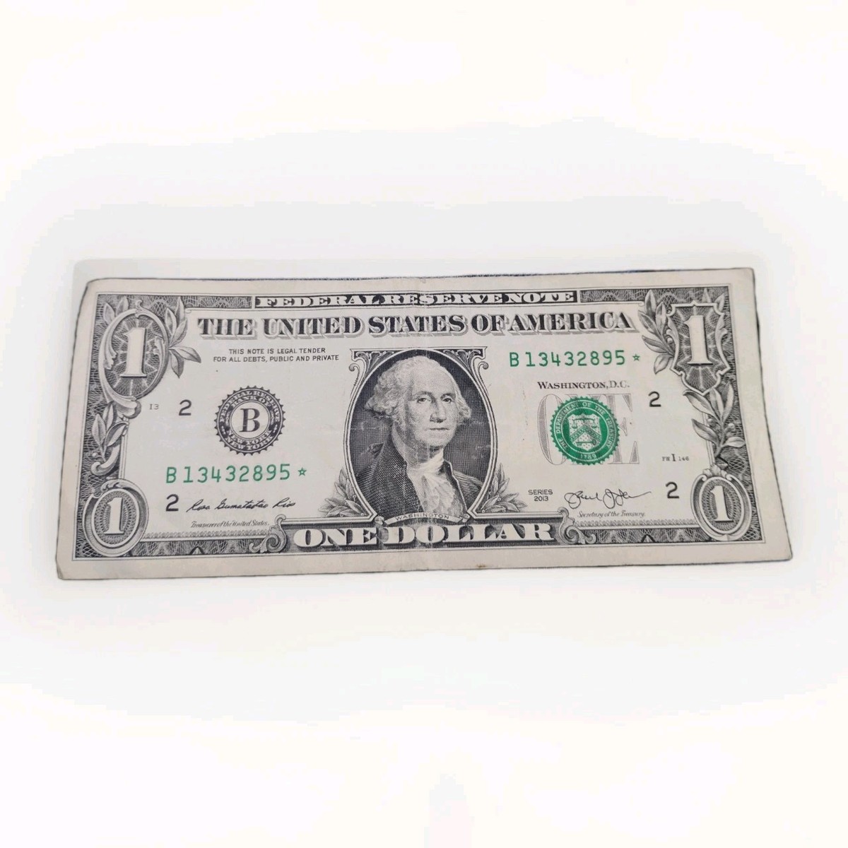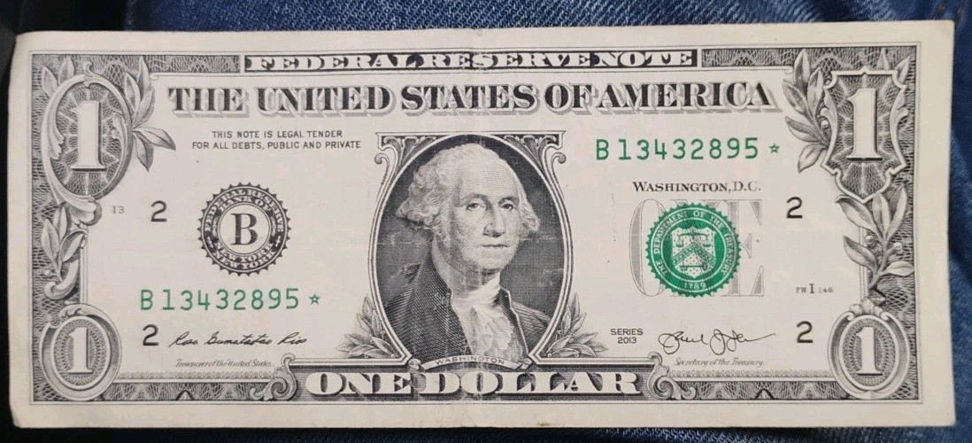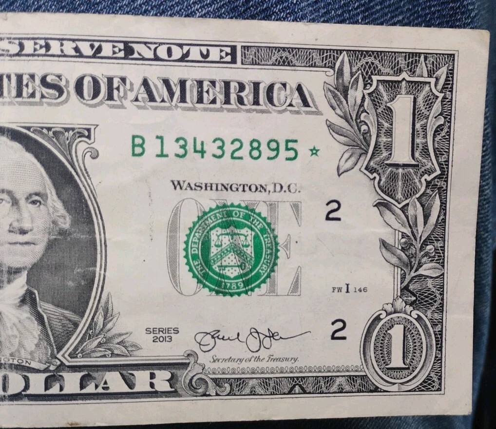 $1 STAR NOTE Bill Error 2013 Broken Ladder Star Note B Serial Number 13432895 ☆