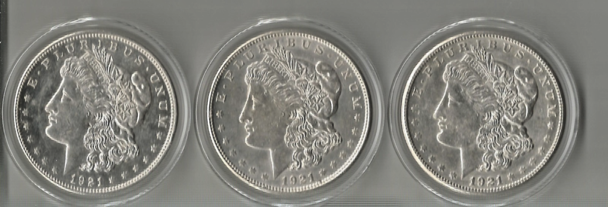 1921 PDS Set of Morgan Silver Dollars in and similar items