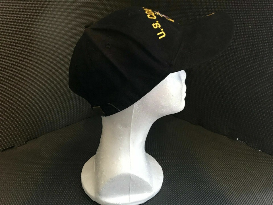 US COAST GUARD PADDED SATIN STITCH BLACK STRAPBACK HAT CAP