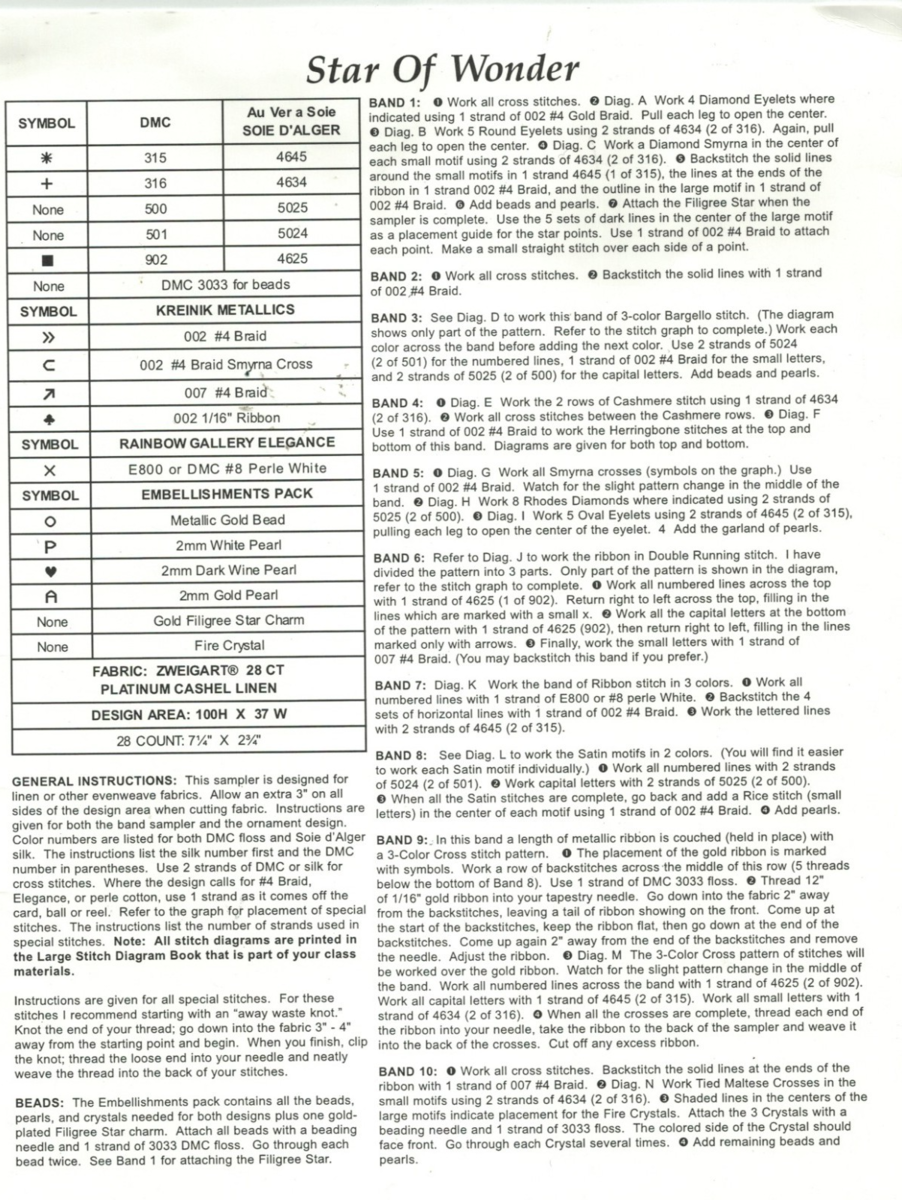 New Unused Chart and Supplies - There are howerver written notes as it appears the owner attended the class took notes but didn't do the design.