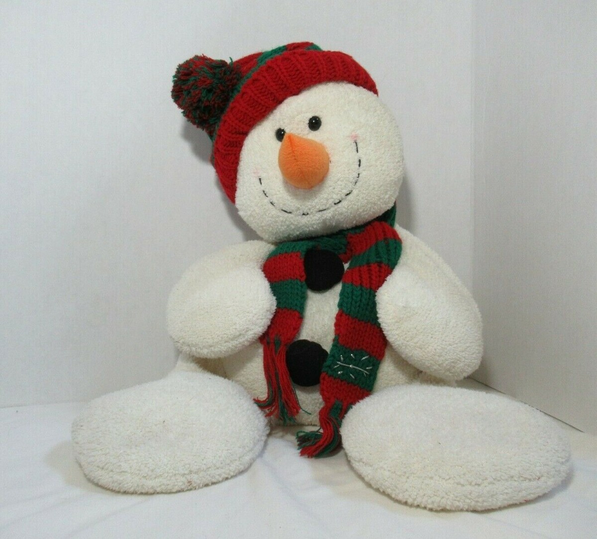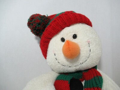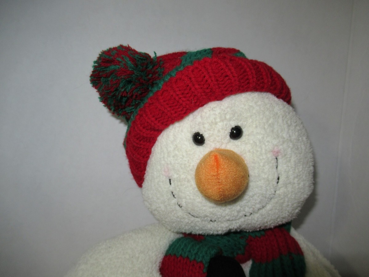 Russ Plush Winter holiday cream chenille snowman red green striped hat scarf