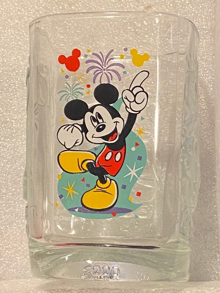 McDonald's 2000 Magic Kingdom 4.5" Square Mickey Glass *Pre-Owned/Nice* SDT1