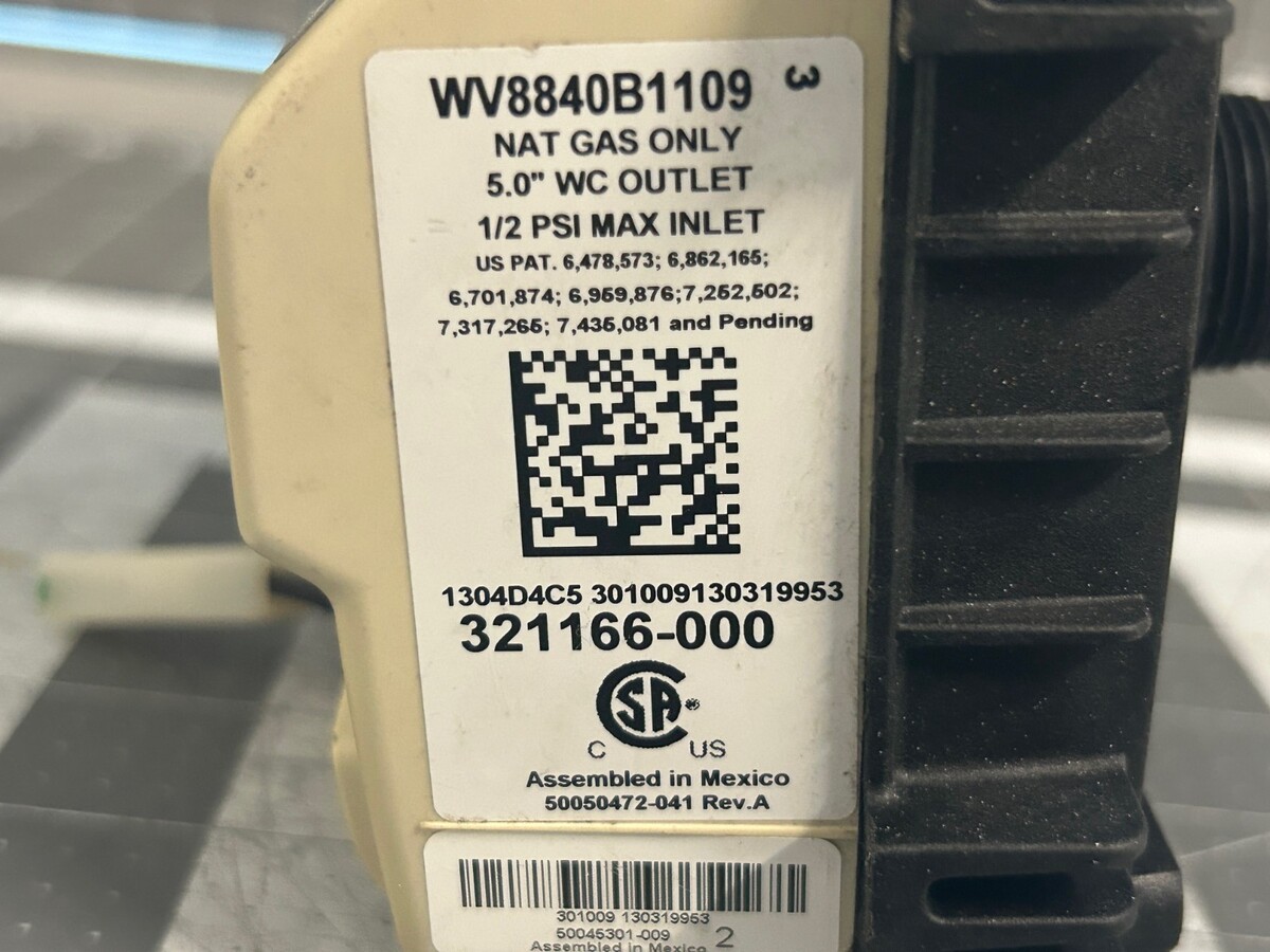 Honeywell Water Heater Gas Valve P# WV8840B1109