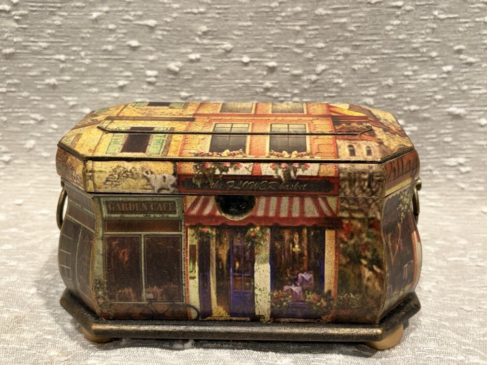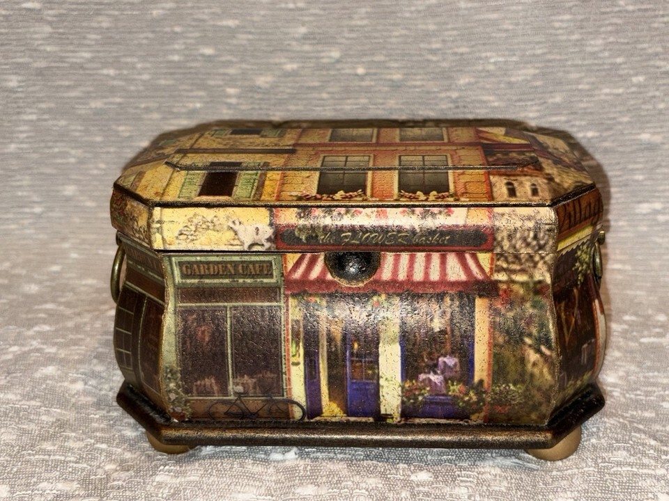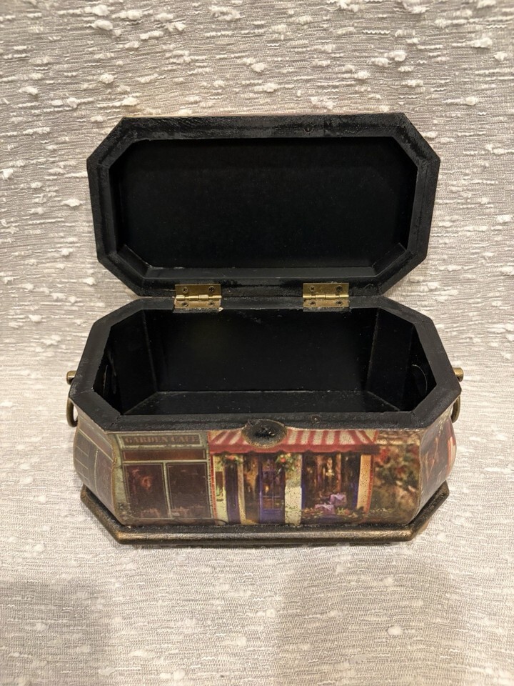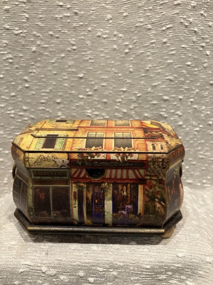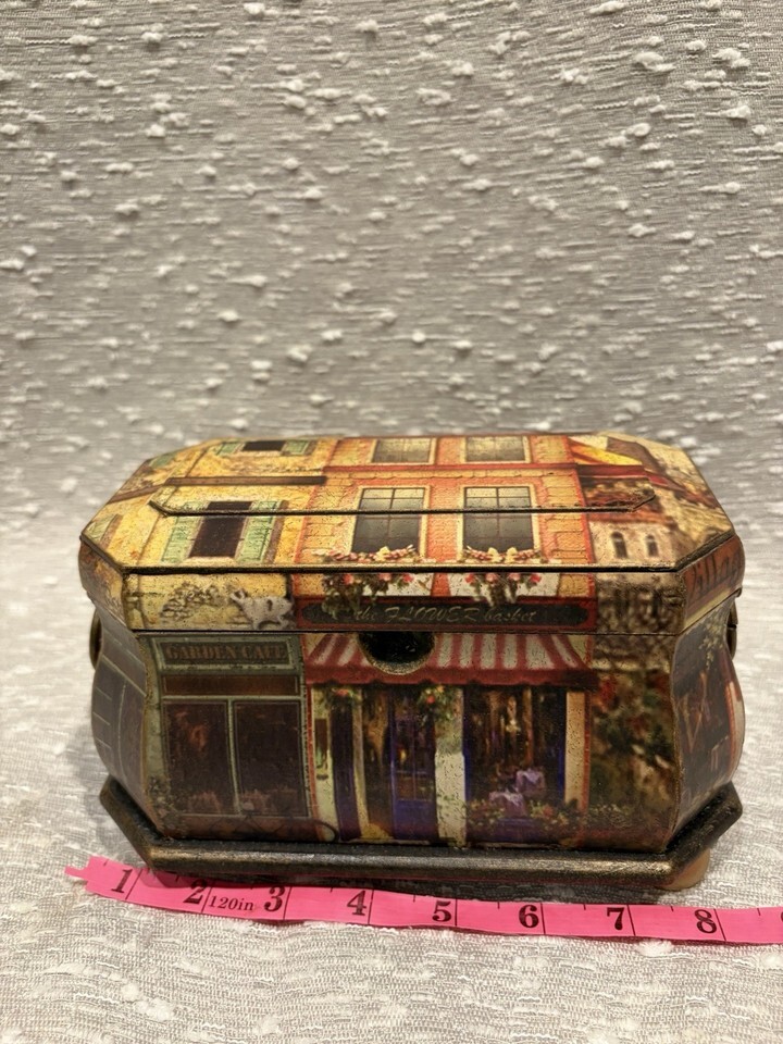 Collectible Wooden London City Scene Miniature House Hinged Lided Box Display