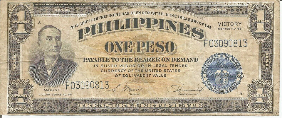 Philippines One Peso Victory Cir. Banknote # 60