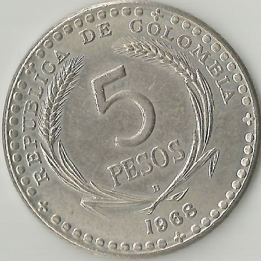 COLOMBIA 1968 5 PESOS - Excellent Coin - Colombia # 36