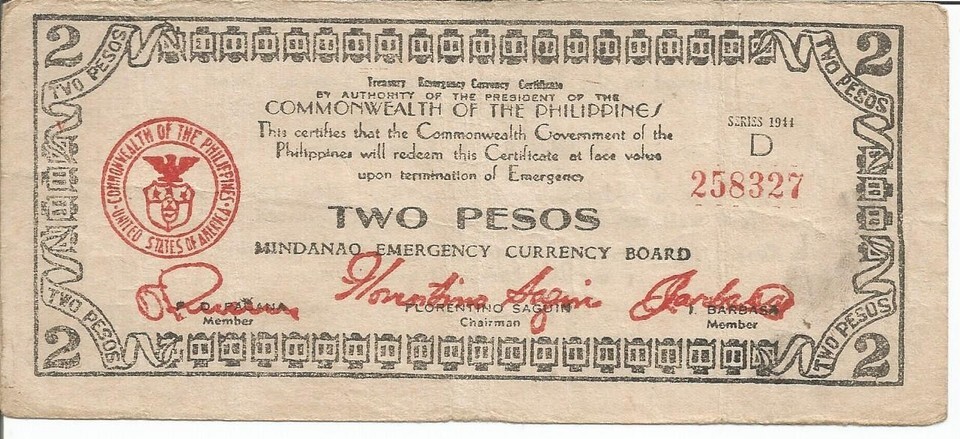 1943 Philippines 2 Pesos Mindanao Emergency and 38 similar items