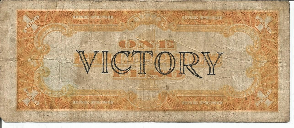 The product is a circulated 1944 Philippines 1 Peso Victory Note. This banknote from the Philippines features a design commemorating victory in World War II. It is a tangible piece of history from the country's past, offering a glimpse into its cultural and monetary landscape during that time. This collectible item is perfect for numismatists or history enthusiasts interested in exploring the unique heritage of the Philippines through its paper money.