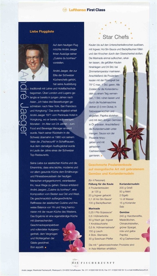 Lufthansa Airline 1st Class Star Chefs Menu and similar items
