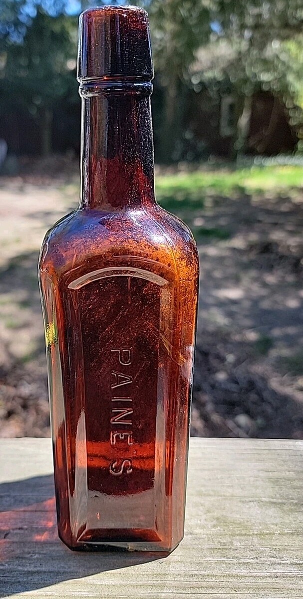 NICE AMBER PAINE'S CELERY COMPOUND BOTTLE APPLIED LIP 1880'S ERA DUG