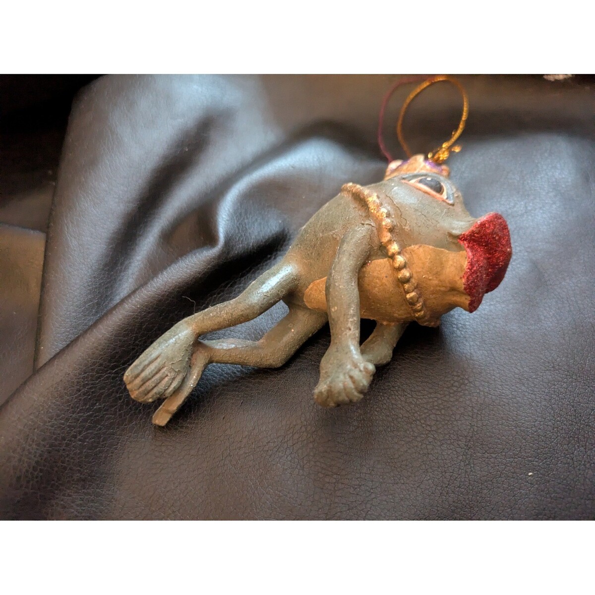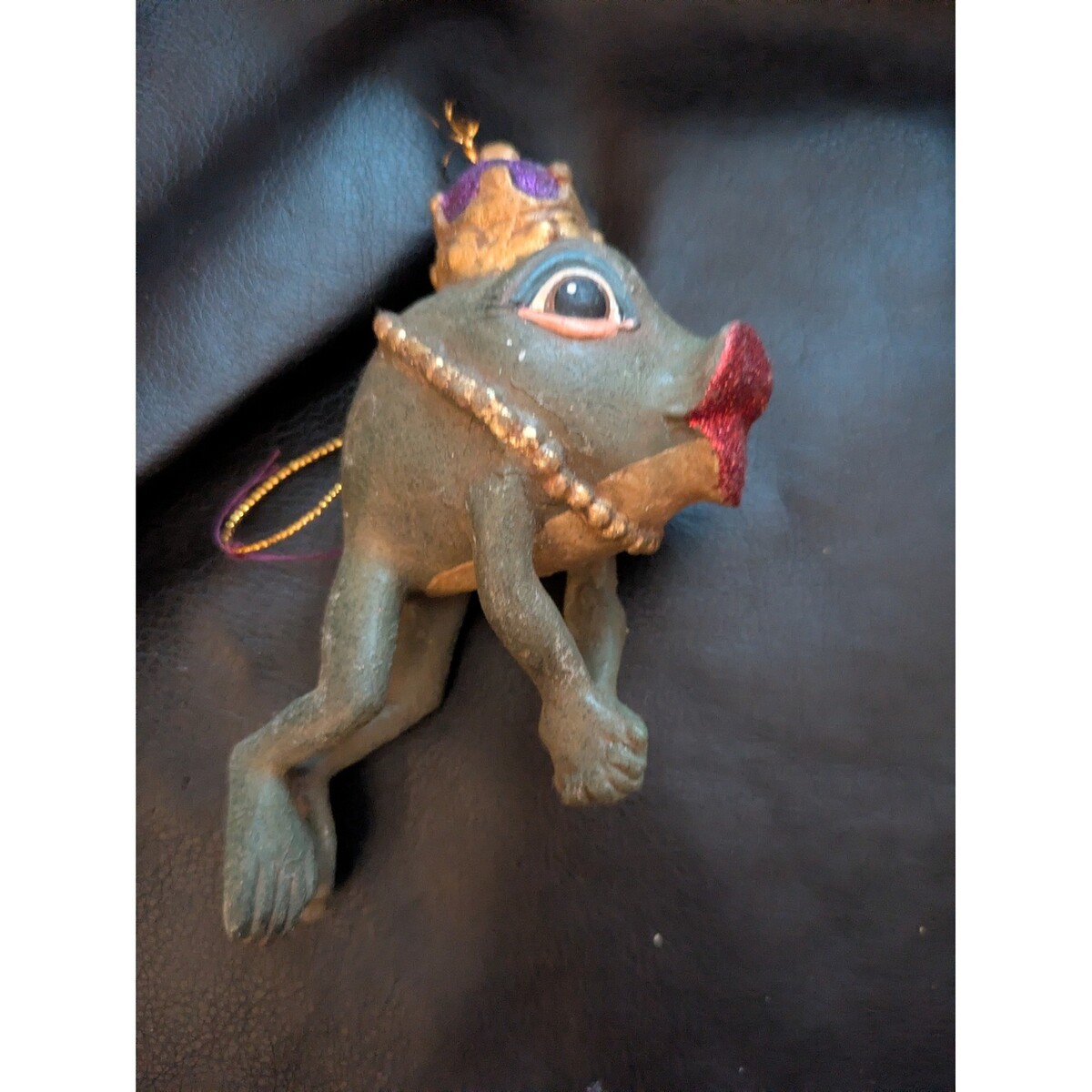 Mots cles : ornement de grenouille, ornement de roi, decor fantaisiste, ornement de couronne, ornement de bijoux, decor de Mardi Gras, ornement festif, ornement original, decor de vacances, ornement d'arbre, ornement d'animal, ornement de collection, idee cadeau, ornement unique