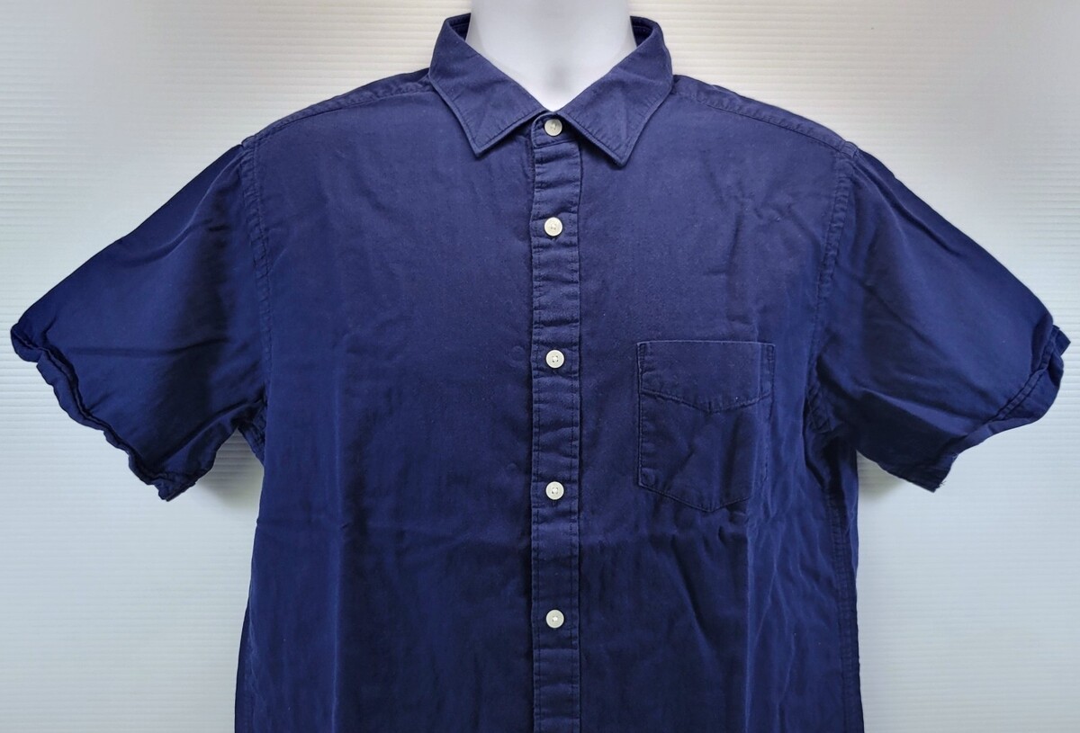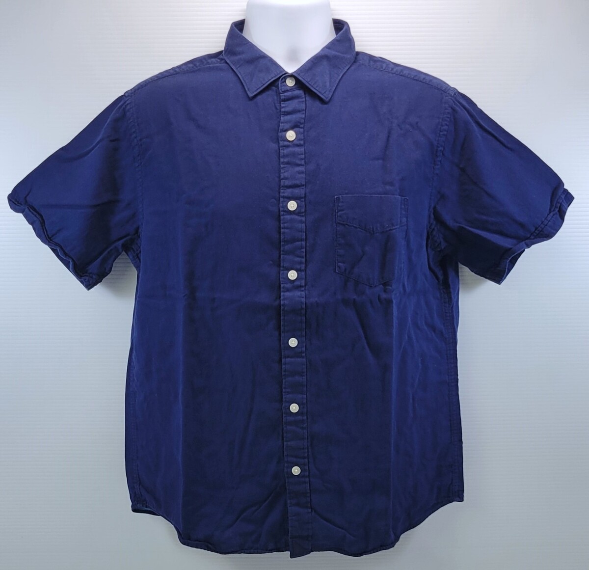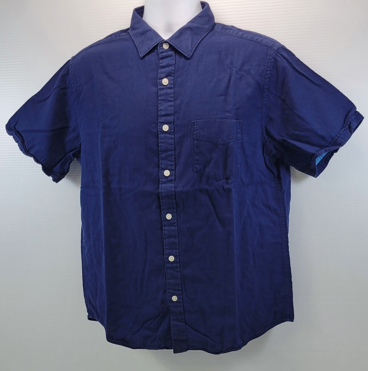 B) UNTUCKit Men Blue Cotton Short Sleeve Button Down Slim Fit Shirt Large