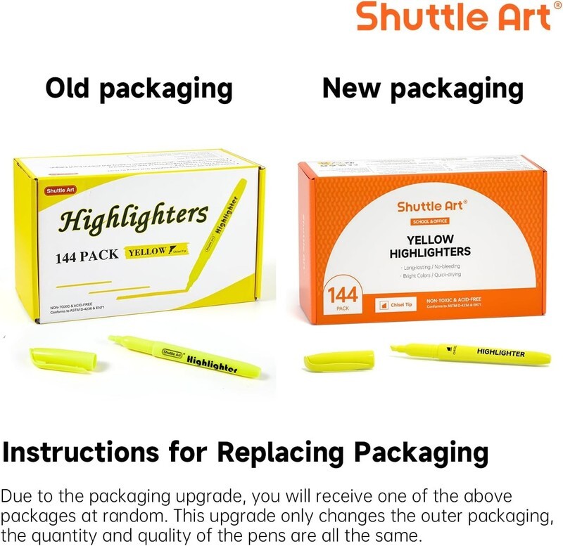 BRIGHT COLOR FOR MULTIPURPOSE: Shuttle Art 144 pack vibrant fluorescent yellow highlighters are perfect for page accent on any paper surface, including textbooks, faxes, copies, newspapers and assorted planners, a wise choice to make your text easy to read.
