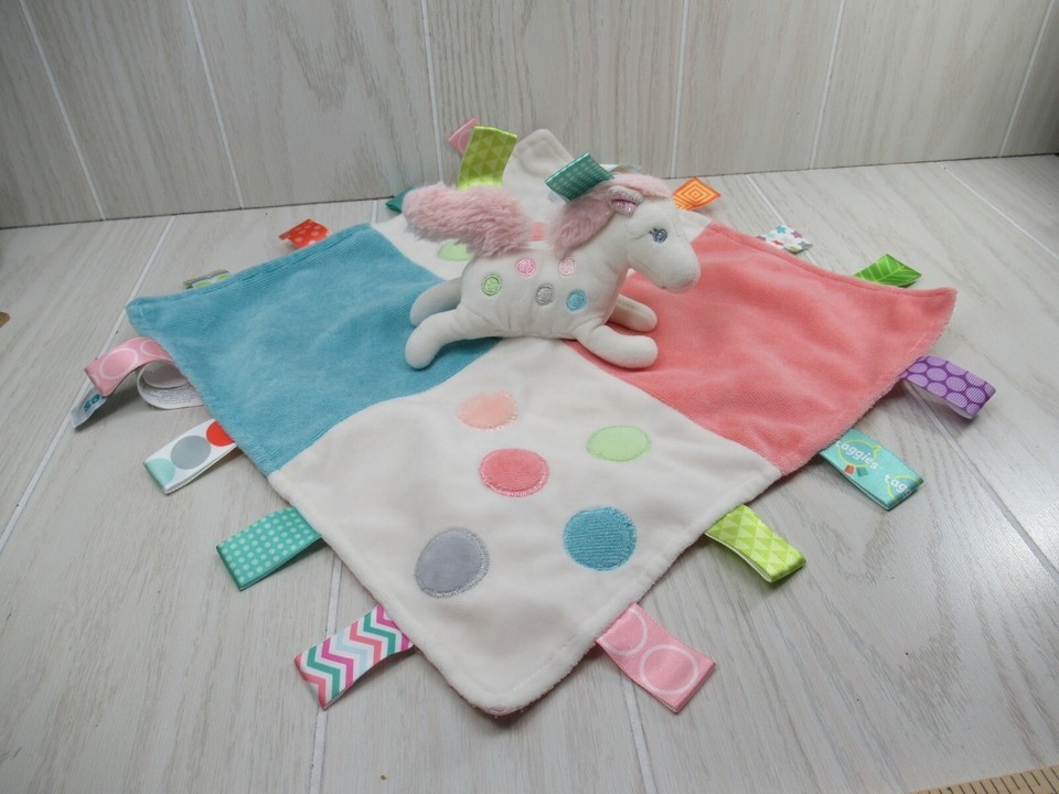 Taggies white horse pony pink mane polka dots baby security blanket lovey satin