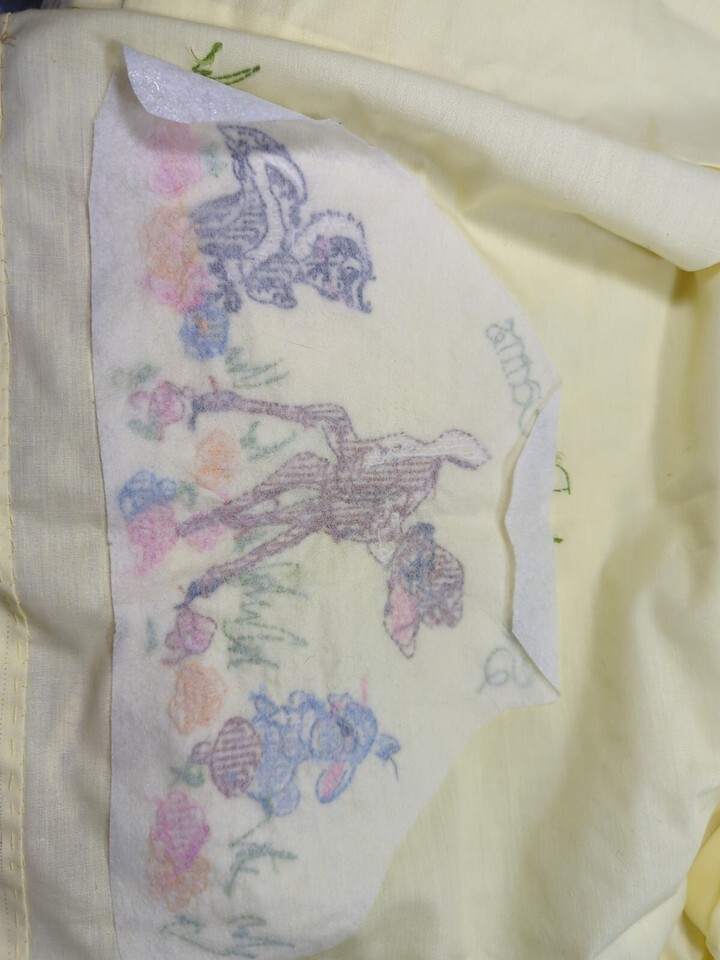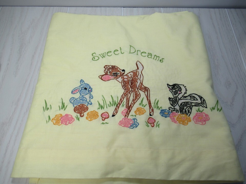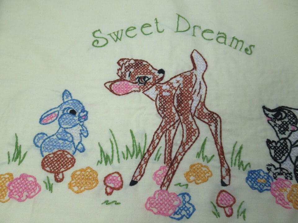 Vintage baby crib sheet coverlet decor hand stitched Bambi Thumper Flower