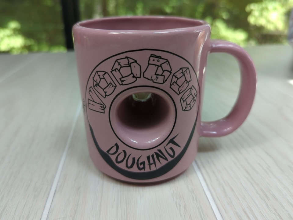 Voodoo Donuts pink coffee mug cup 2 sided and similar items