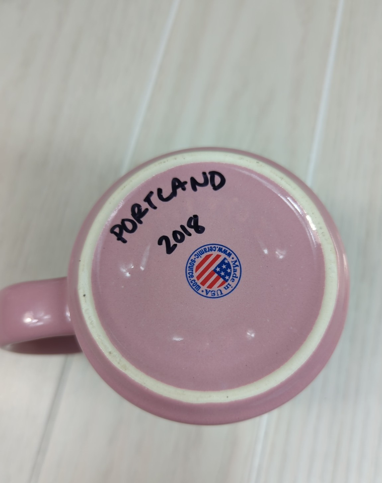 Voodoo Donuts pink coffee mug cup 2 sided The Magic is in the hole USA made