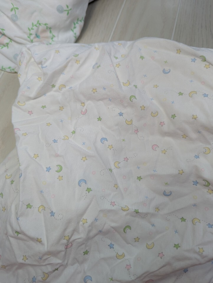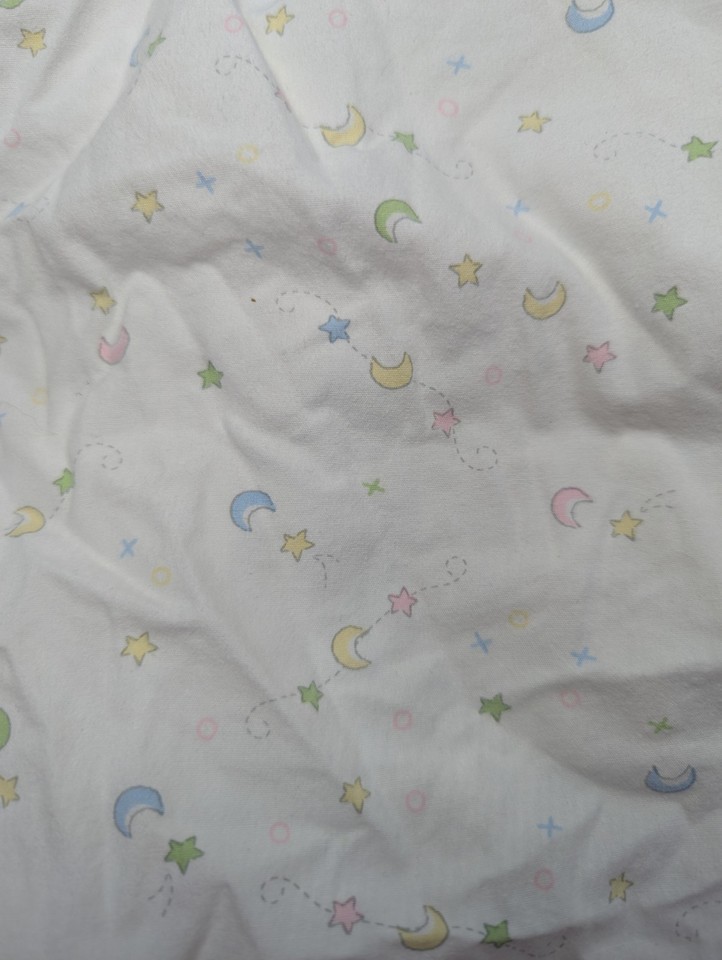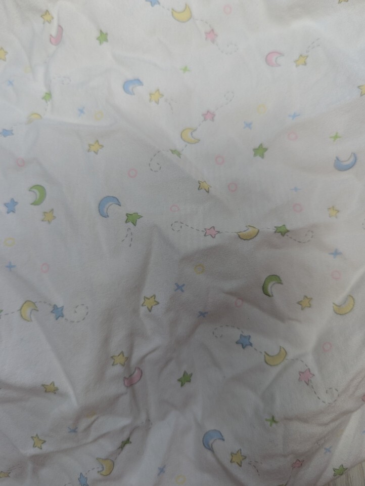 Fitted Crib Sheet Just Born pastel moons stars pink blue green yellow cotton