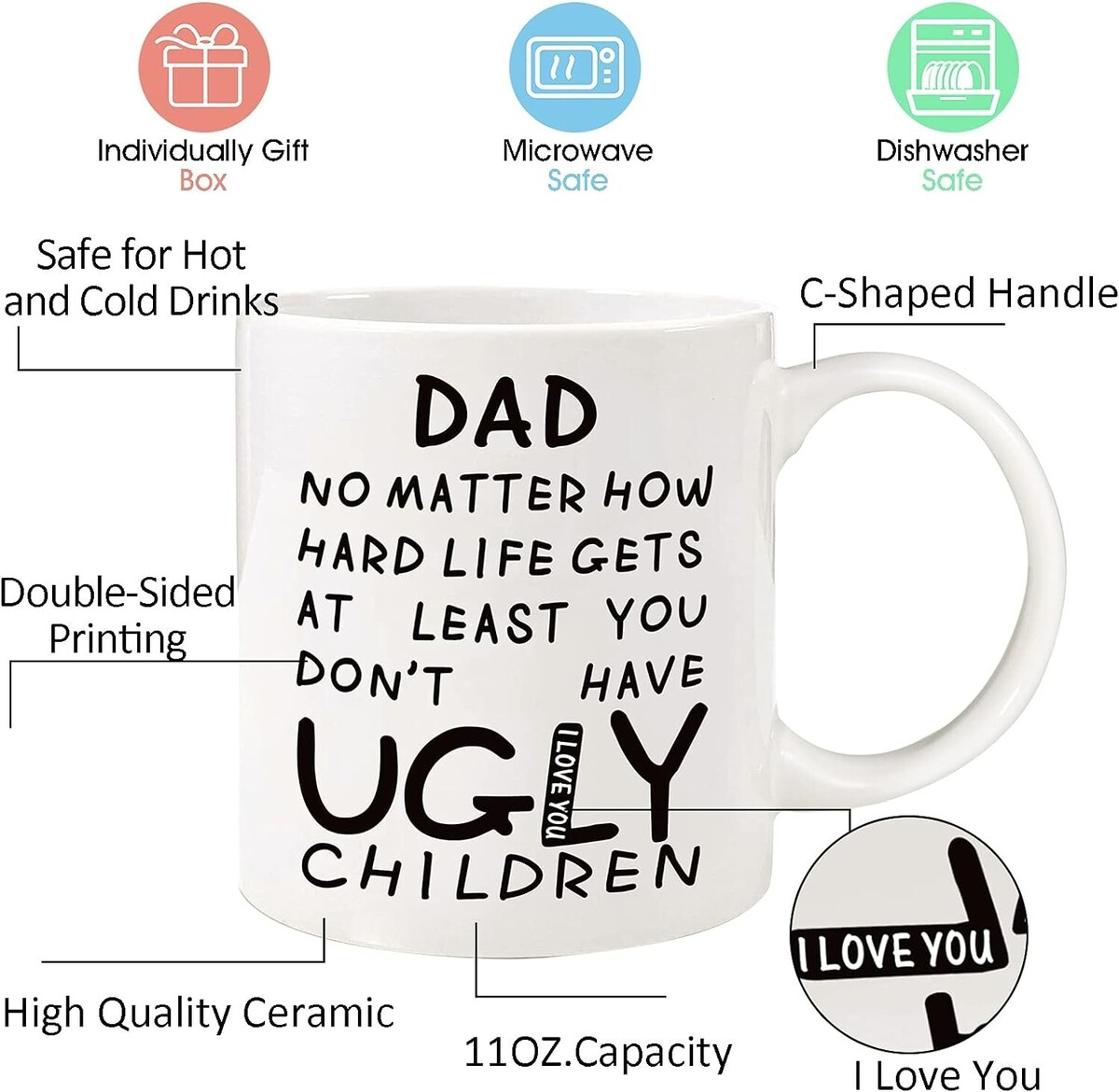 Looking for a gift for dad that is both funny and practical? Our Funny Coffee Mug for Dad is the perfect choice! Made with premium quality ceramic and featuring a unique design, this mug is sure to become his favorite vessel for his daily coffee or tea. With its funny saying and elegant gift box packaging, it's a great gift idea for any occasion. Give your dad a gift that will make him smile every day - order our Funny Coffee Mug for Dad now!