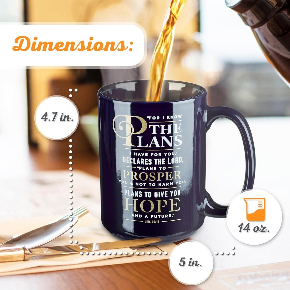 14 oz Ceramic Bible Verse Mug: I Know the Plans Jeremiah 29:11 - Navy Blue