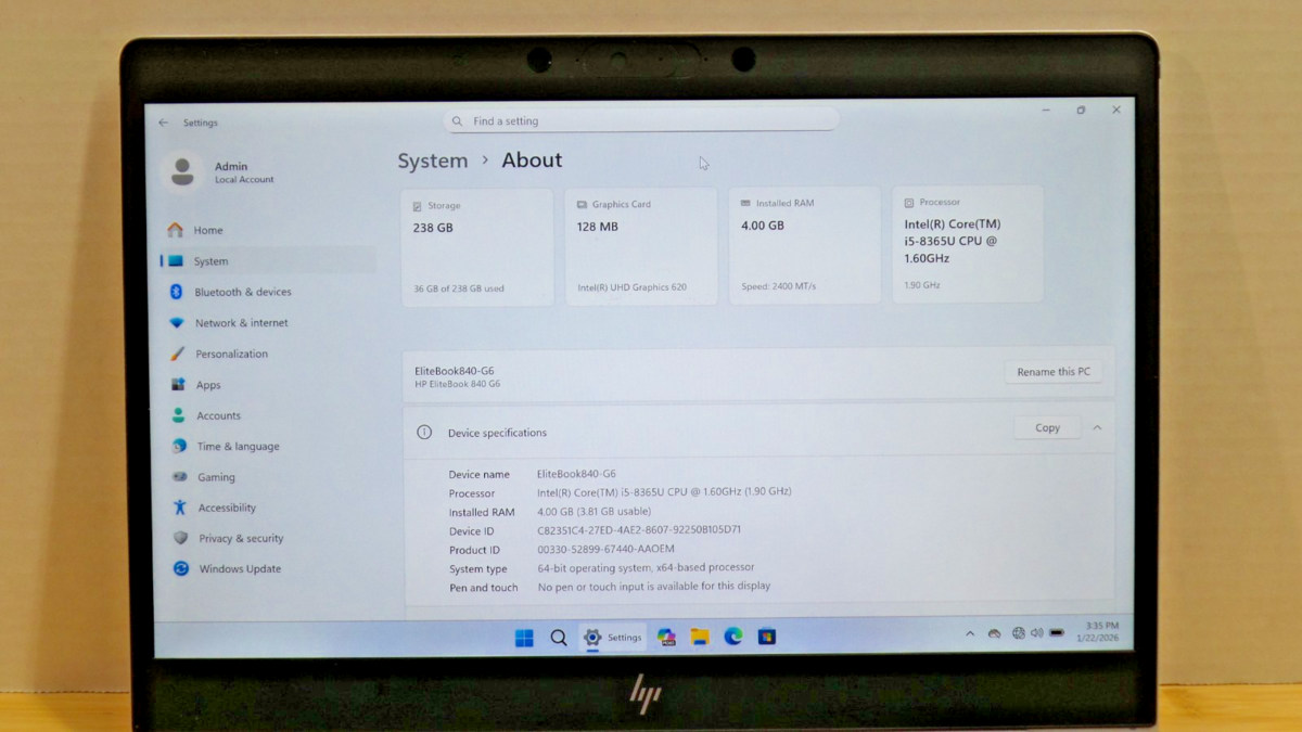 HP EliteBook 840 G6 | i5-8365U | 4GB RAM | 256GB NVMe | Win 11 | *BIOS LOCKED*