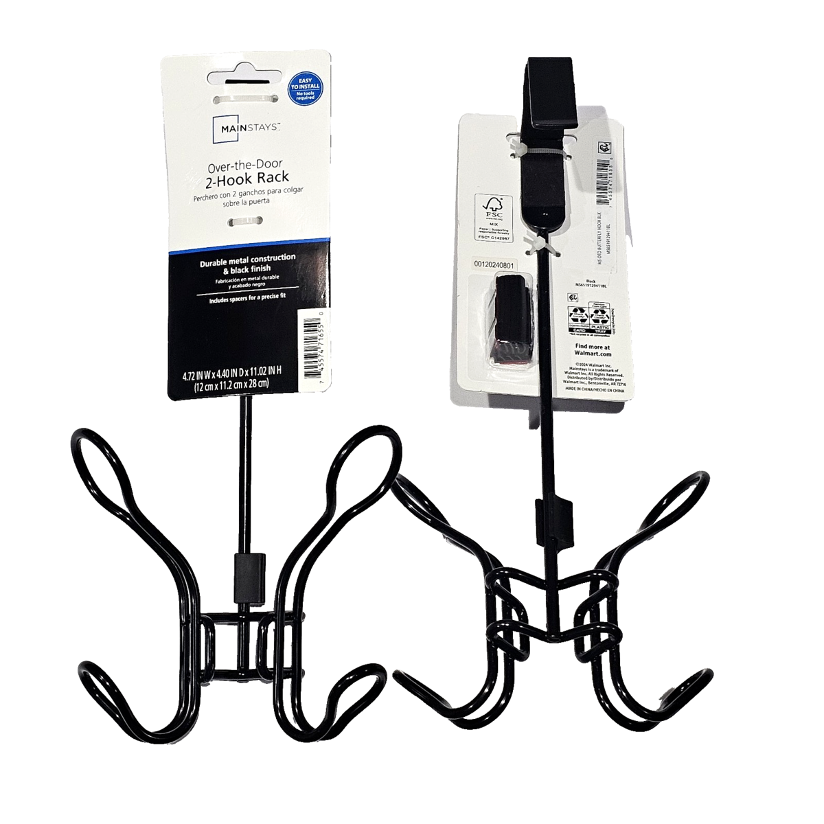 2 Pack Mainstays Over The Door 2 Hook Rack Durable Metal & Black Finish