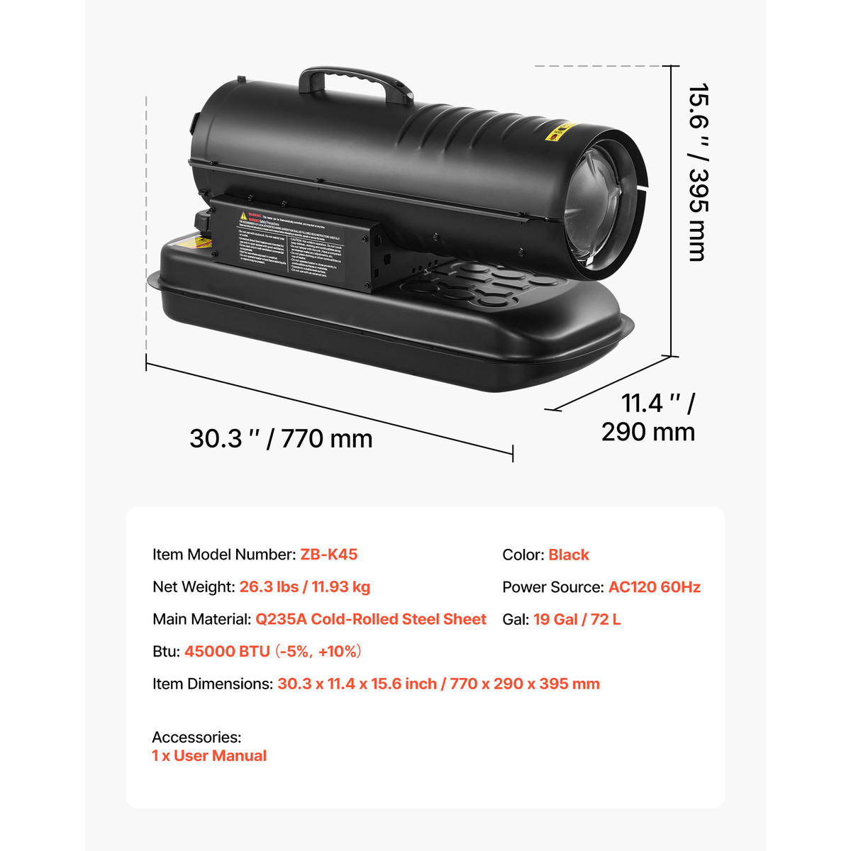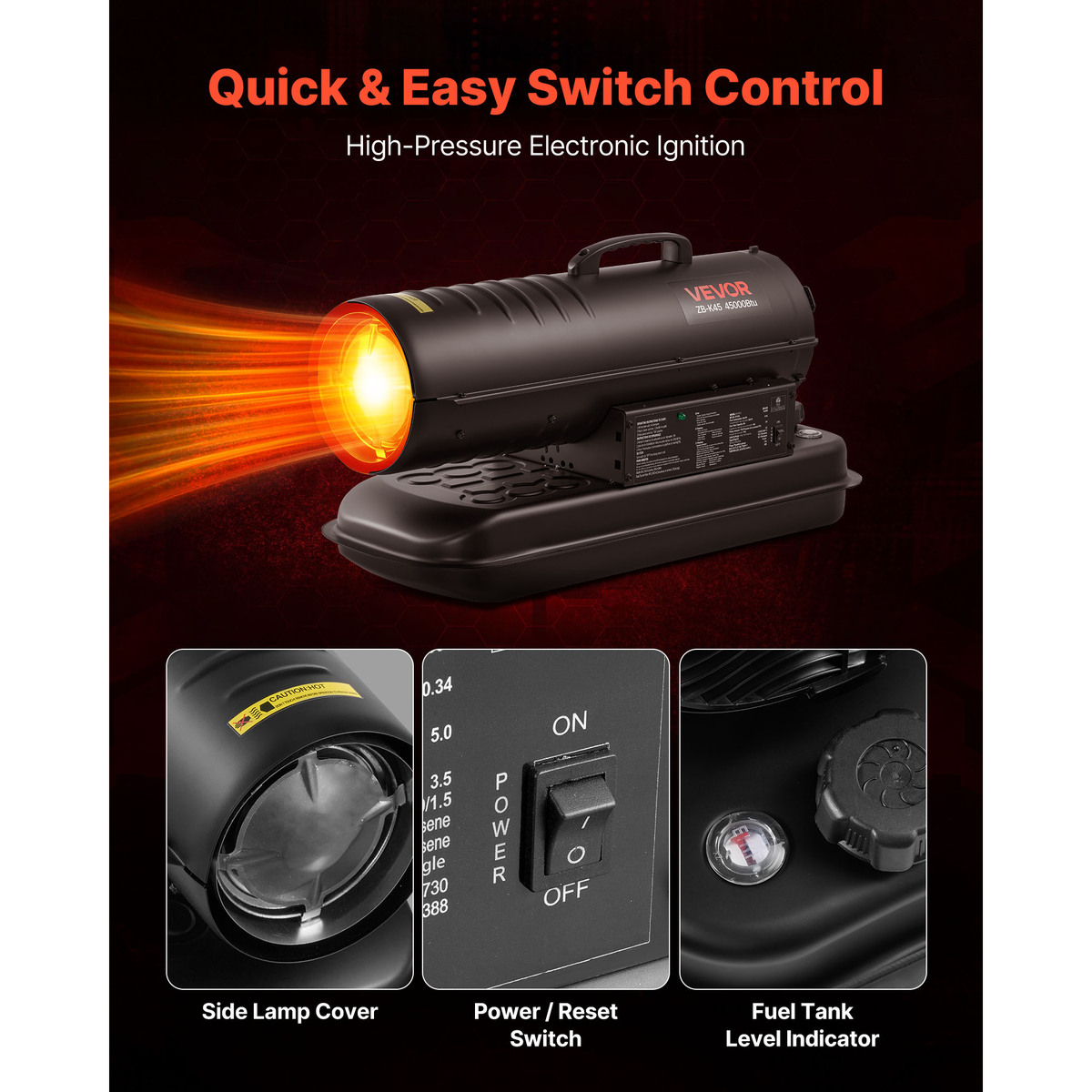 VEVOR 45000 BTU Forced Air Kerosene Diesel Heater, Torpedo Space Heater, Black