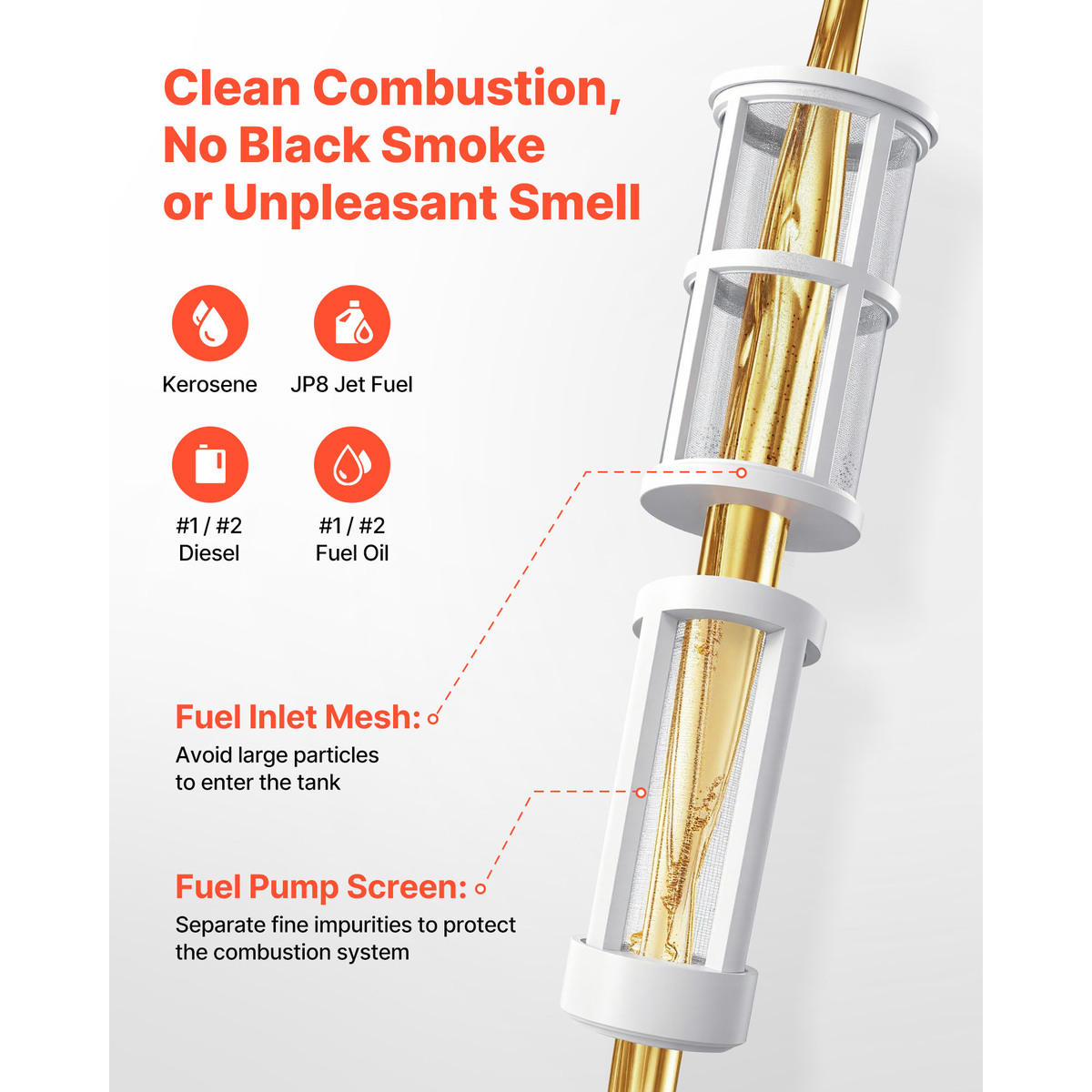 Clean Burning Performance: The radiant kerosene heater features dual fuel filters for cleaner combustion Compatible with kerosene and diesel, it reduces smoke, unpleasant smell and discomfort during use