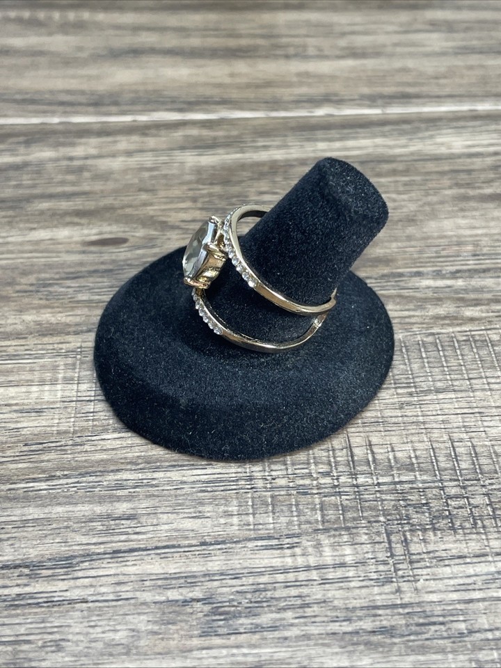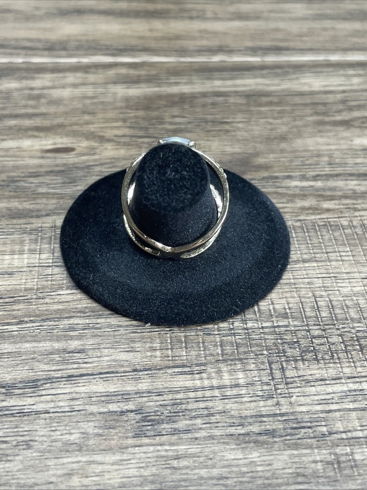 Vintage Silver Tone Light Brown Stone Boho Hippie Ring Size 8 KG JD
