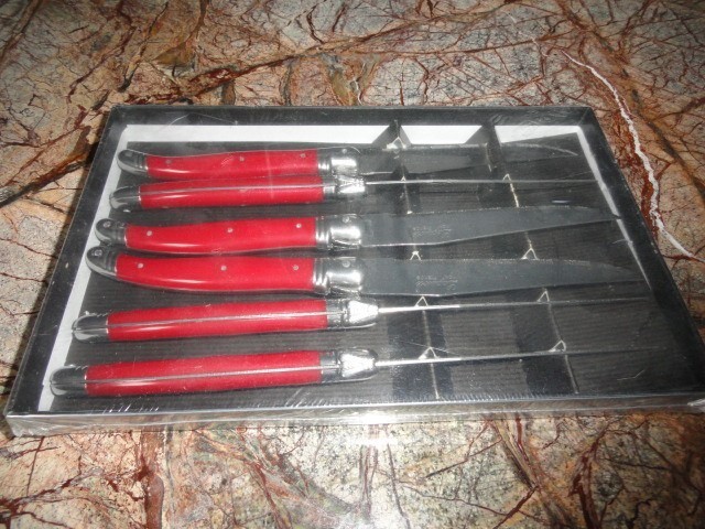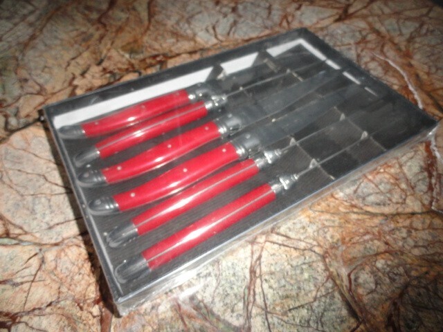 Set of 6 Laguiole steak knives ABS Red handles NIB