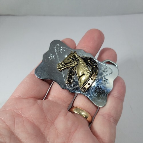 Vintage Horse Head SMALL Belt Buckle Through Lucky Horseshoe on Metal Western