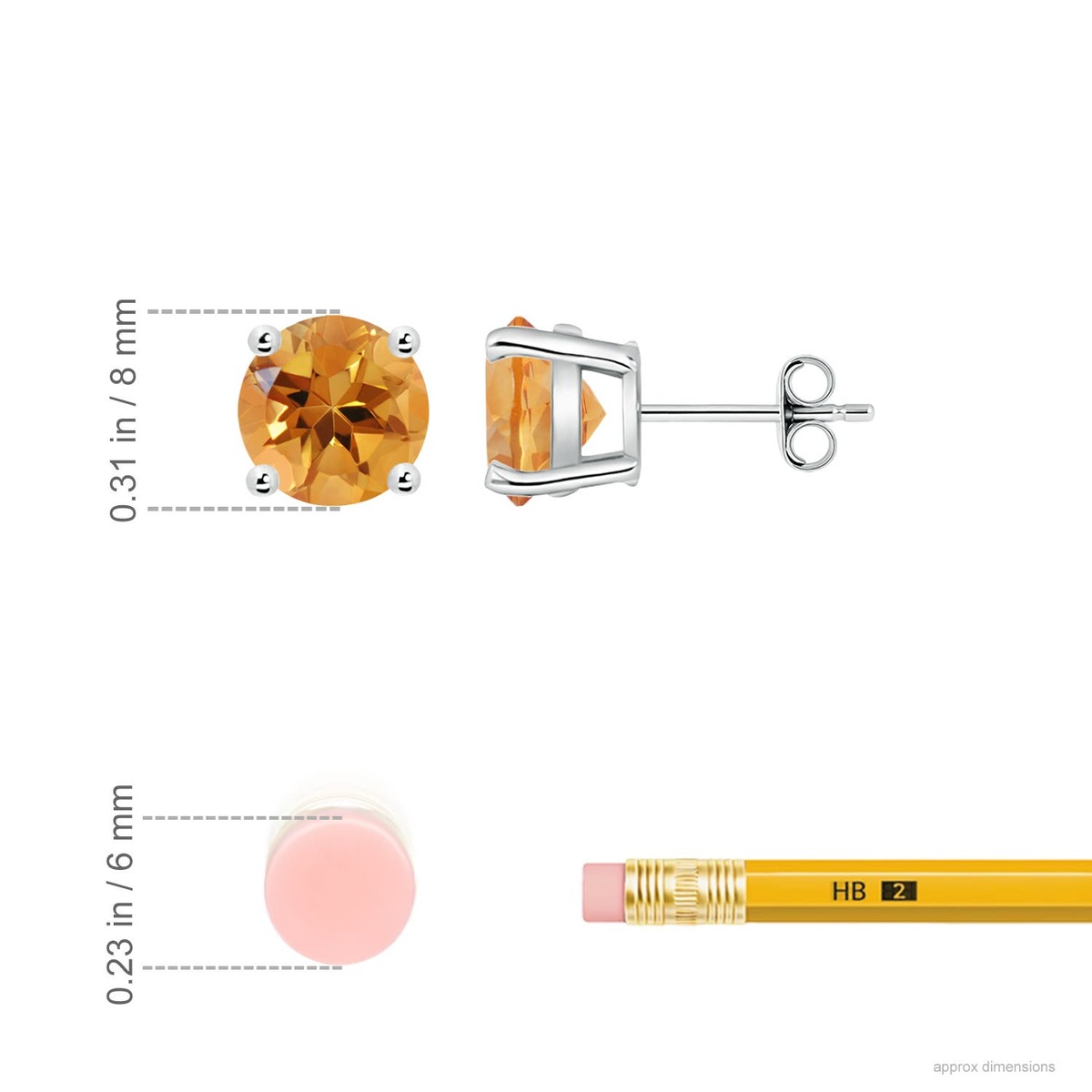 ANGARA Natural Citrine Stud Fine Earrings in 925 Sterling Silver (Size-8mm)