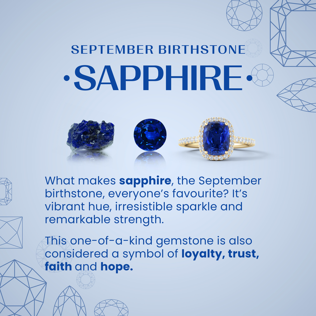 Celebrated for its rich blue color and stunning brilliance, blue sapphire exudes an air of luxury and royalty. It symbolizes strength, power, wisdom and wealth, and is the official birthstone for September. Moreover, it's also the traditional gemstone for the 5th and 45th wedding anniversaries.