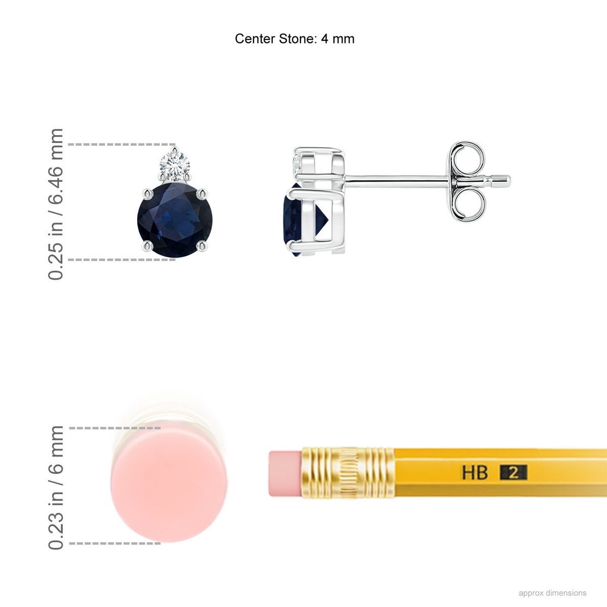 ANGARA Blue Sapphire Stud Earrings with Diamond in Silver for Women (4mm)