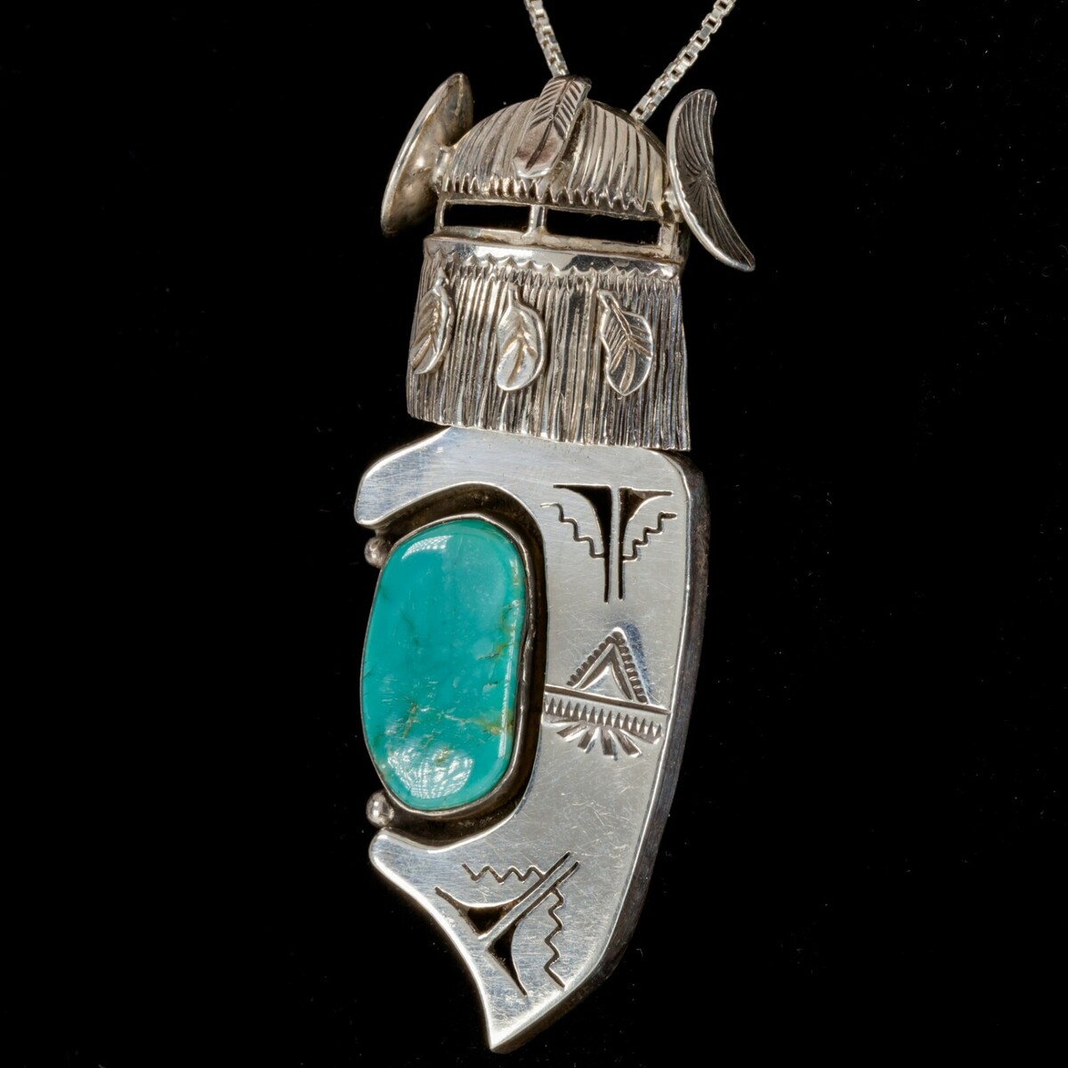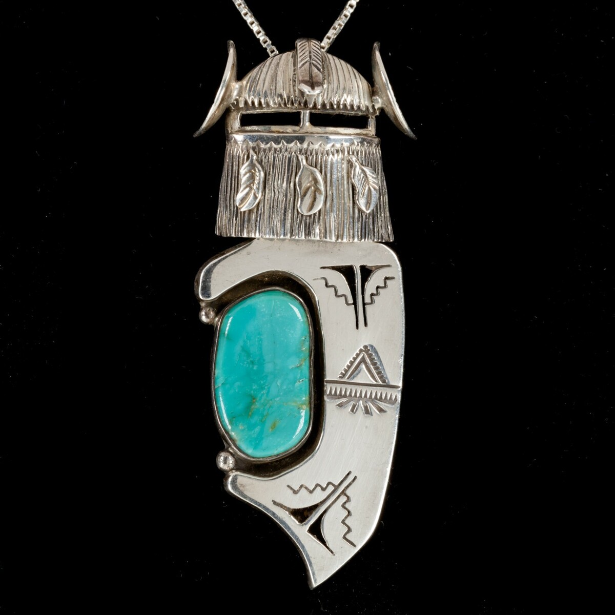 Nelson Morton Navajo KACHINA Sterling & Turquoise pendant/Pin 70 mm Long