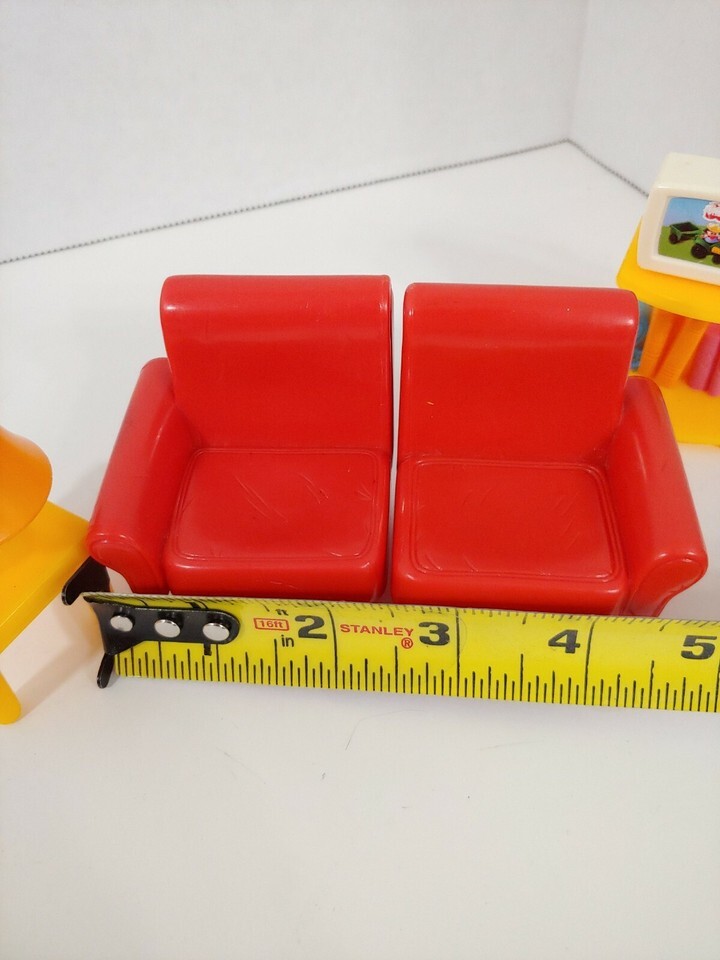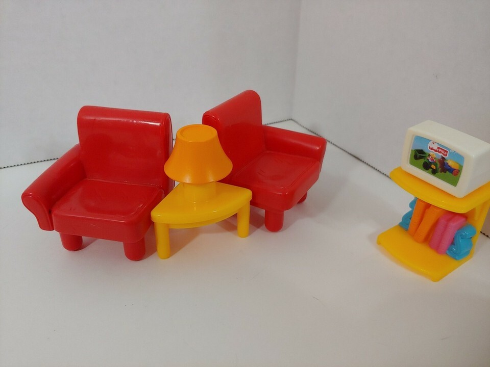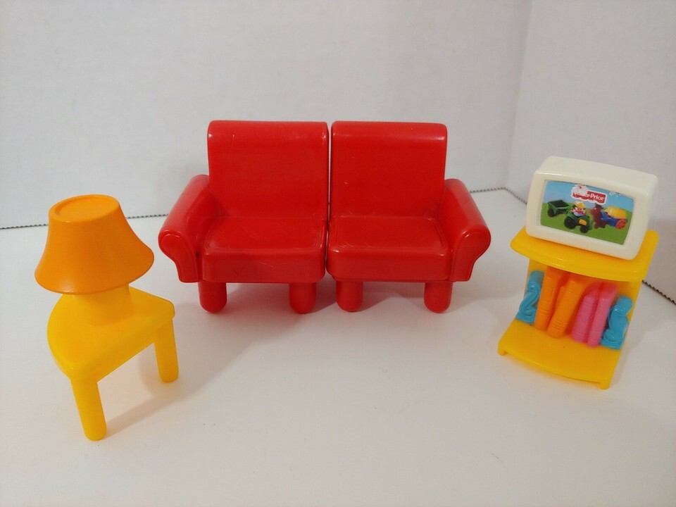 Fisher Price My First Dollhouse furniture lot set red sofa couch tv table lamp