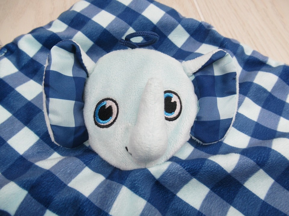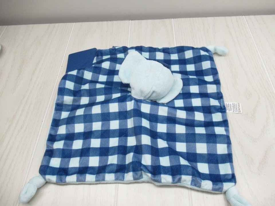 BooginHead blue checked elephant baby security blanket lovey teether paci pal