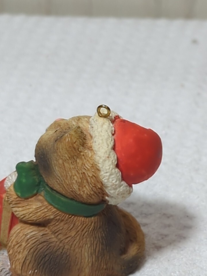 Cat in Santa hat gift holly leaves berries Christmas Tree Ornament made Taiwan