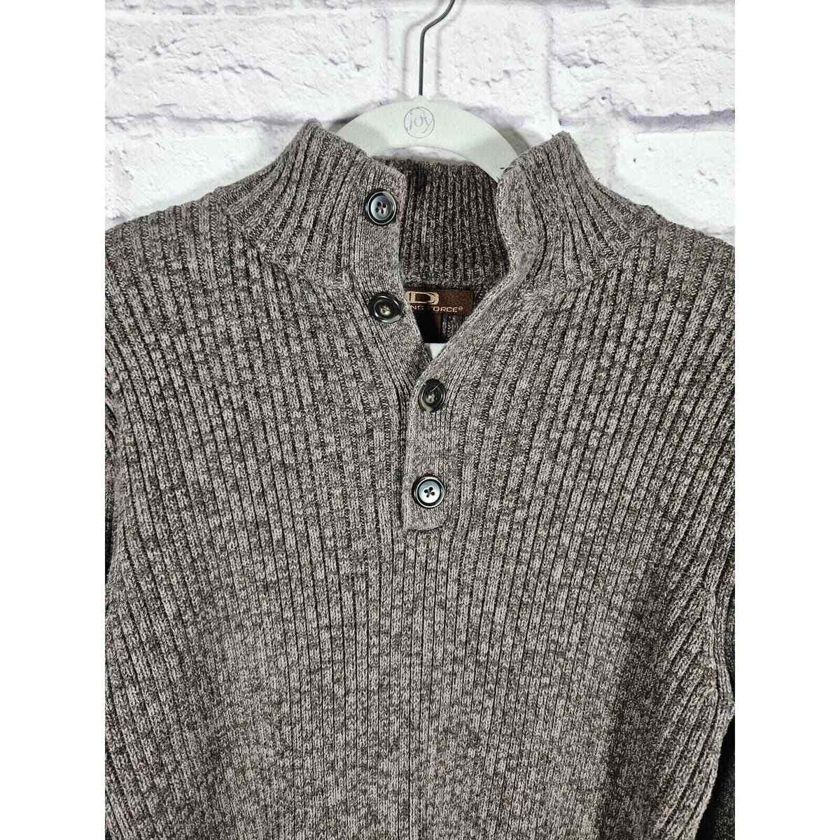 Driving Force Men?s Ribbed Pullover Sweater 1/3 Button Mocha Brown Size Medium