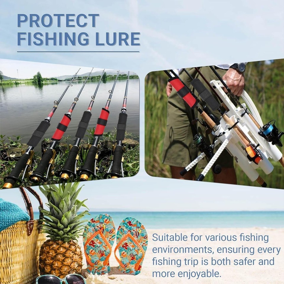 10 Pcs Fishing Hook Protector - This set includes 5 black and 5 red lure wraps, designed to protect your fishing equipment. Crafted from premium canvas, Oxford cloth, and flexible rubber backing, these hook keepers ensure long-lasting durability and reliable protection. The sturdy construction prevents punctures and keeps your fishing lure kit secure, safeguarding you from sharp hooks