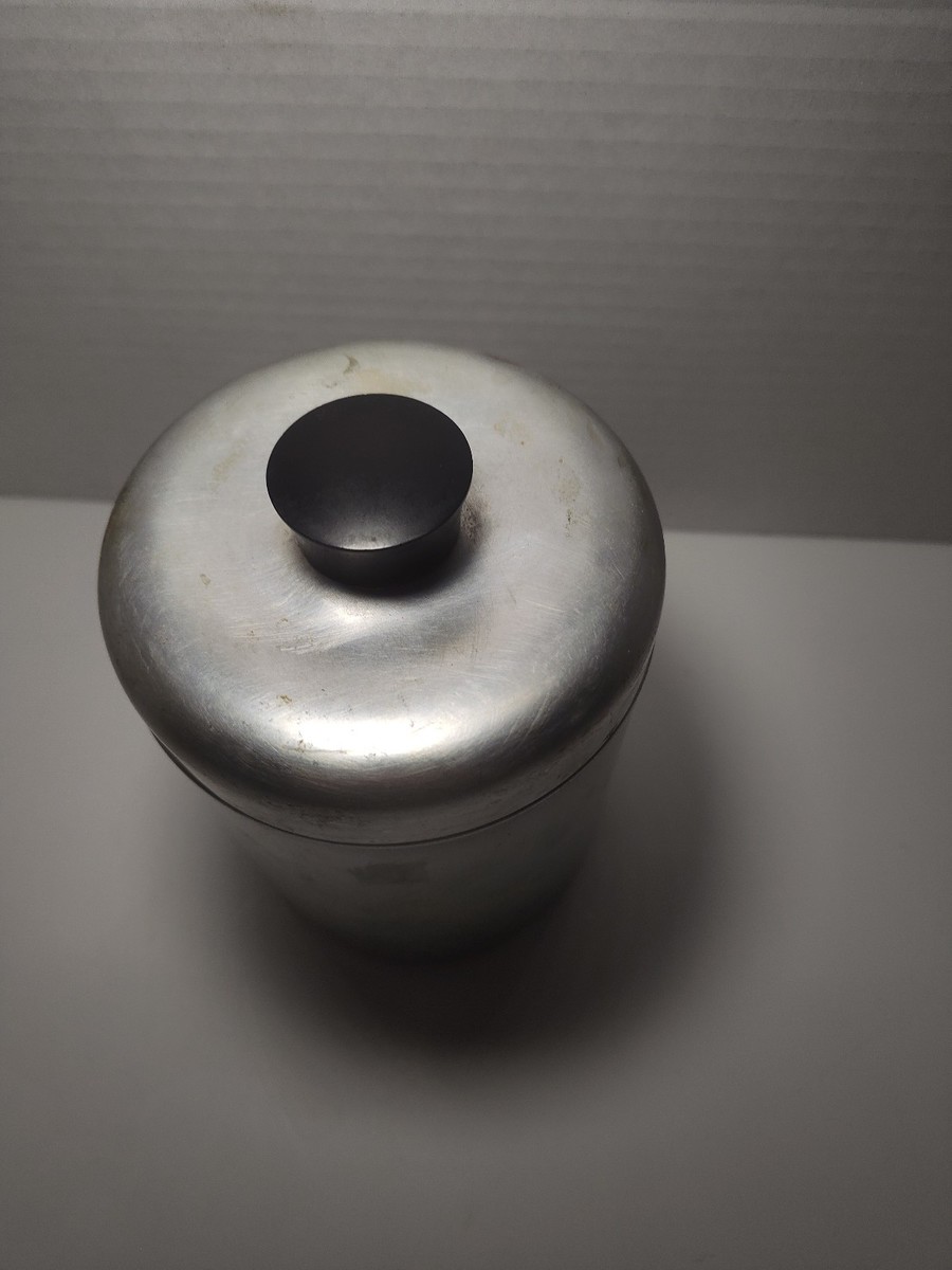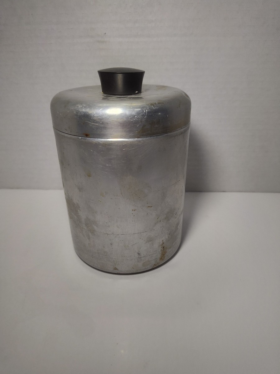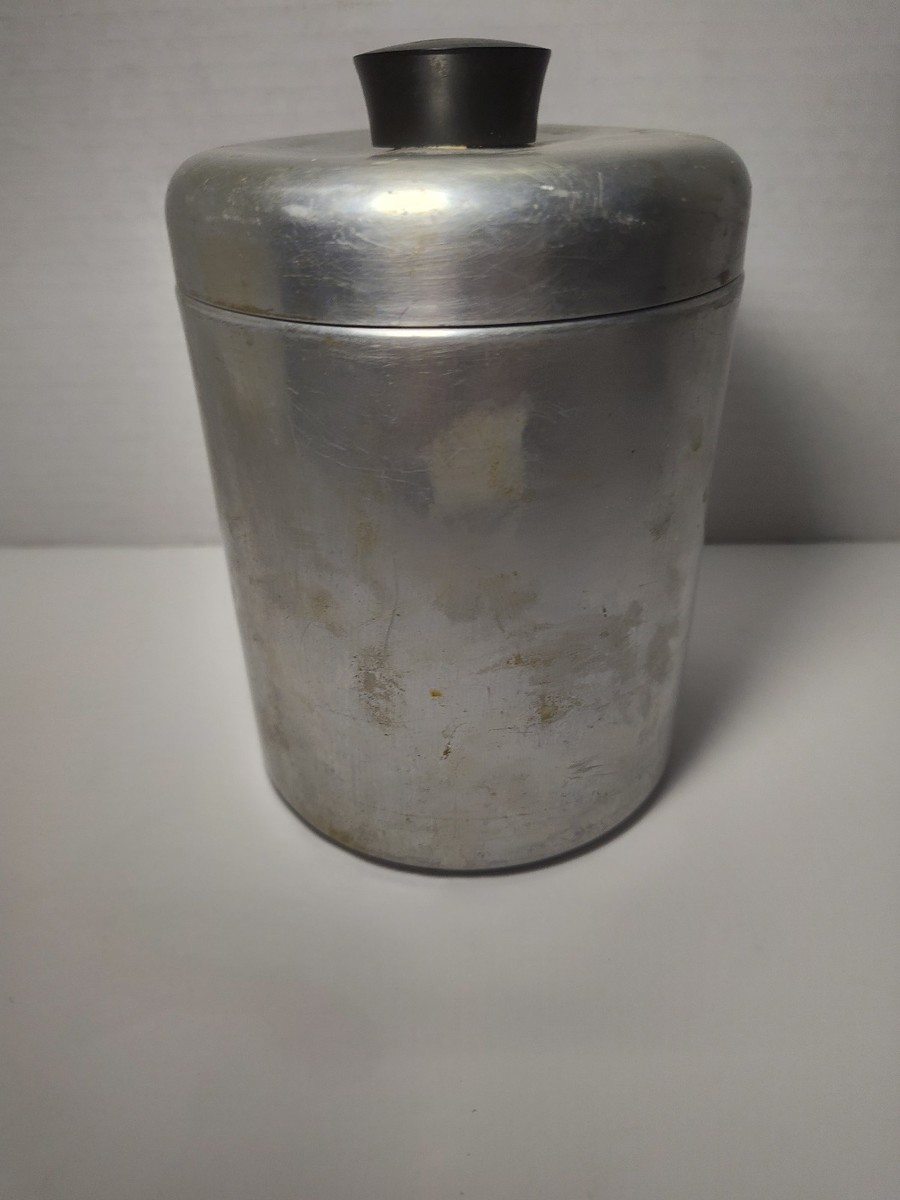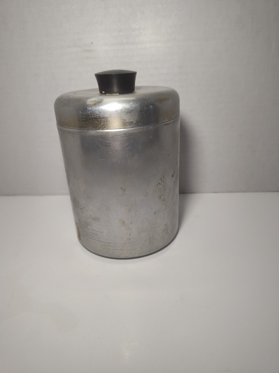 50's HAWTHORN BRUSHED ALUMINUM CANISTER WITH LID 6.5" X 5"D VERY CLEAN