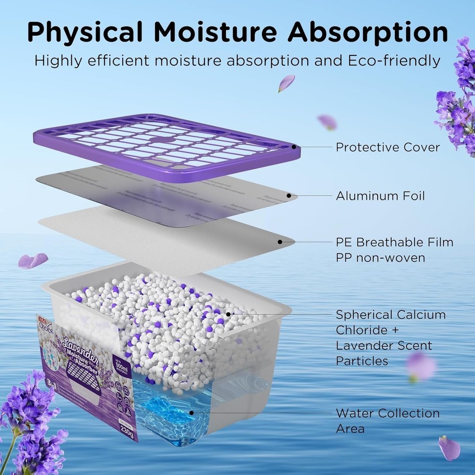 Fresh Long-Lasting Performance: This moisture absorber is infused with a soothing lavender fragrance, creating a pleasant atmosphere in your space. Each 500ml collecting capacity ensures long-lasting dryness. Enjoy the dual benefit of lavender fragrance and moisture absorption.