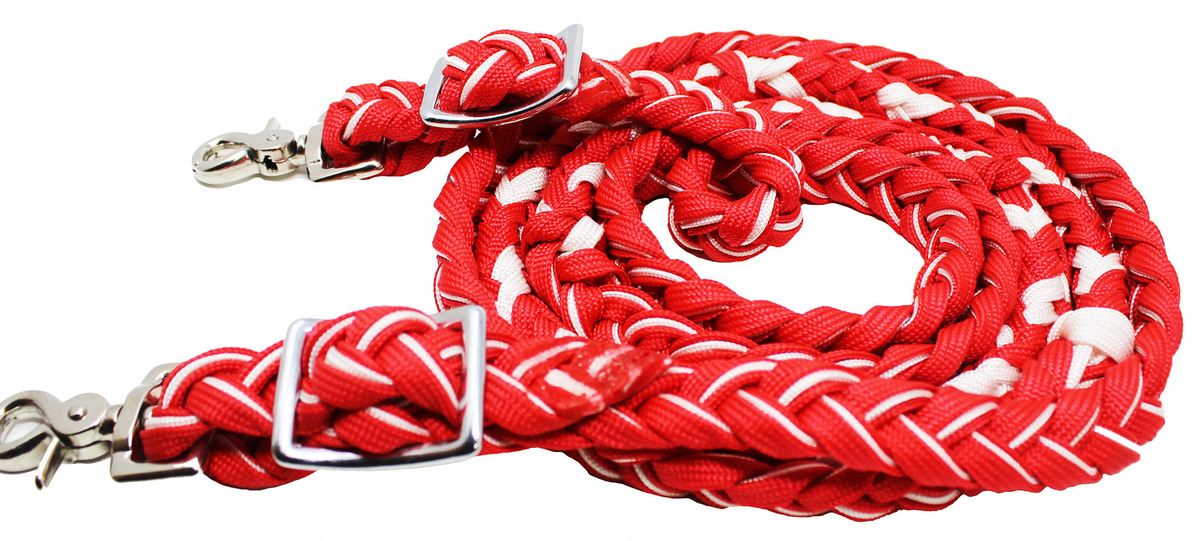 Horse Braided Poly Nylon Roping Western Barrel Reins Tack Red/White 607241