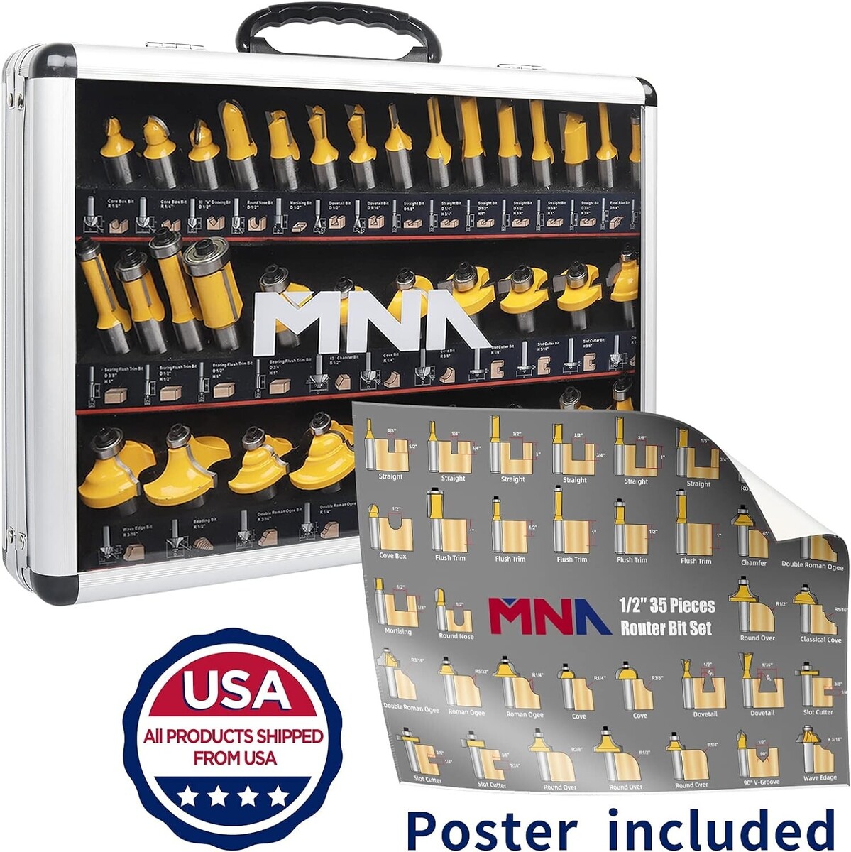 Router Bits 35 Pcs Set, 35 Pieces 1/2 Inch Shank Router Bit Kit. American Router Bit Set Complete Set.