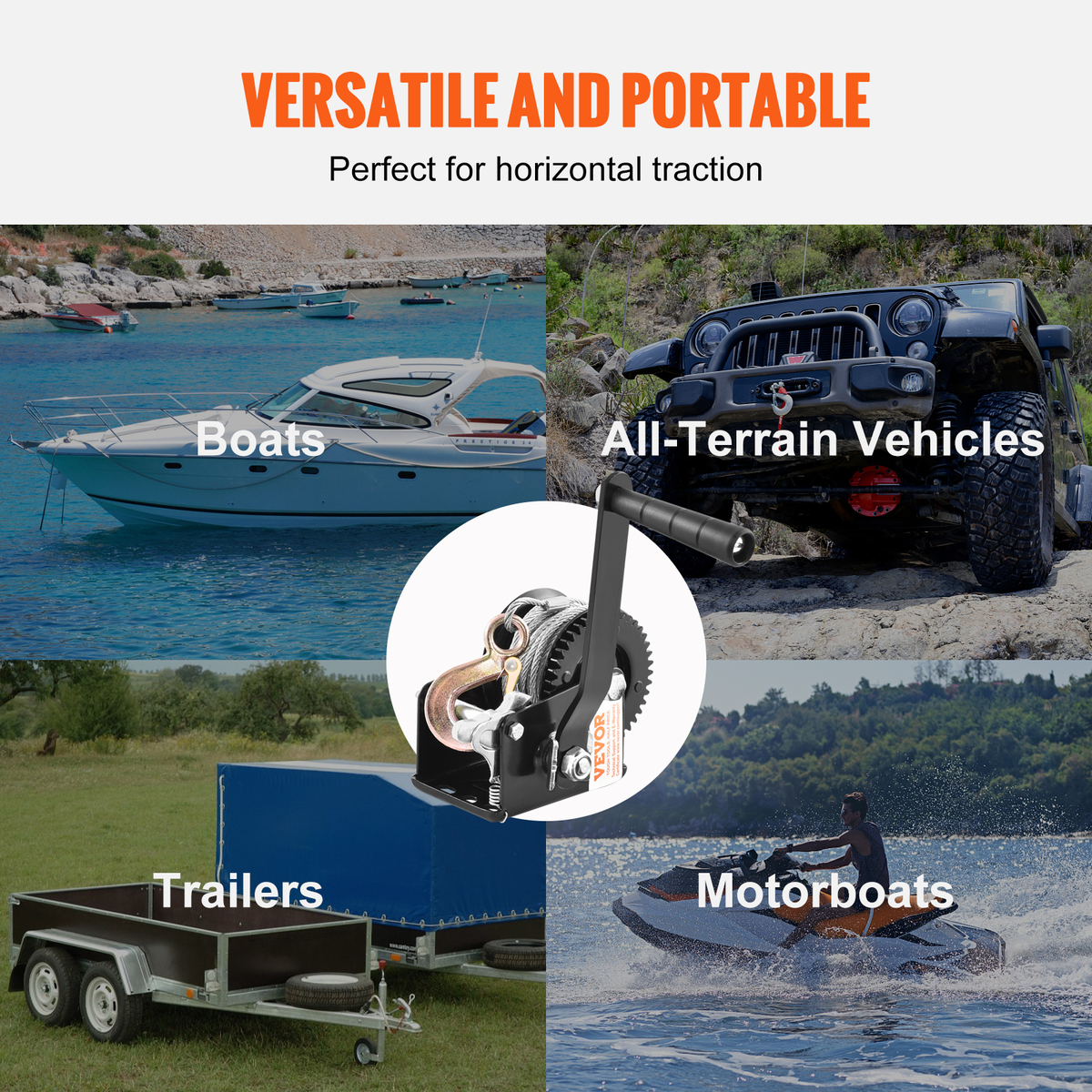 Ready for Anything, Anywhere: Simple to set up, a breeze to use – our heavy duty hand winch is your go-to for horizontal pulling wherever you are. Indoors, outdoors, on the water or land – bring it to motorboats, trailers, or all-terrain vehicles, and watch it work its magic.