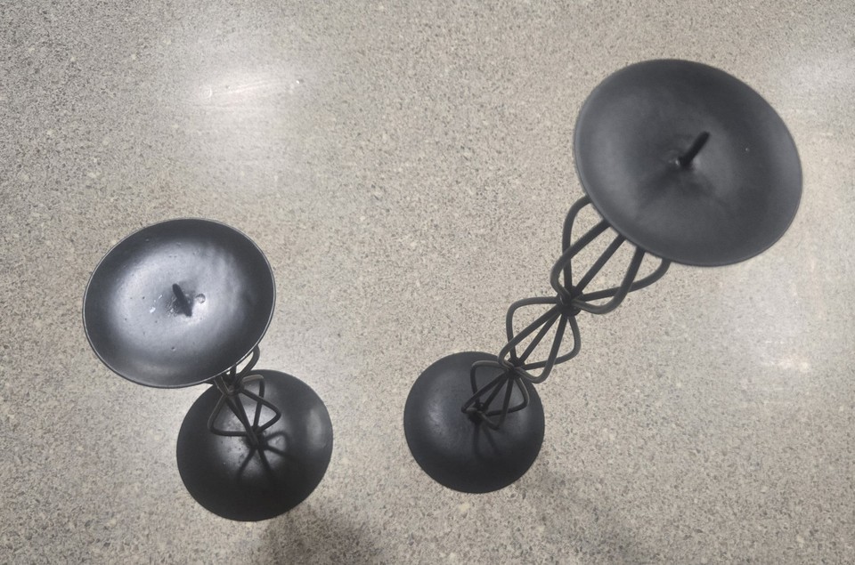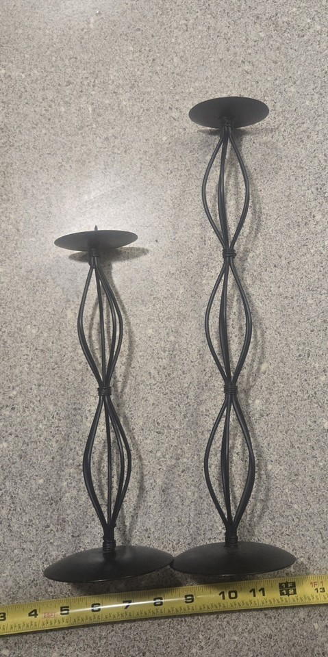 Set Of 2 Spiral Pillar Black Wire Candle Stick Holder 14.5" & 10"