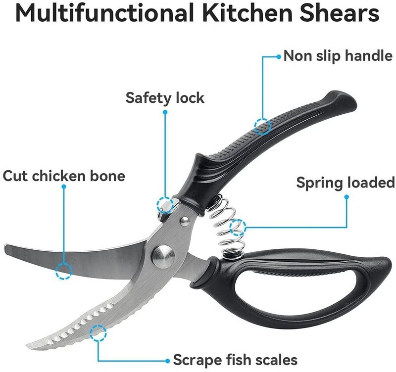 Heavy Duty Poultry Shears - Stainless Steel Kitchen Scissors Spring Loaded